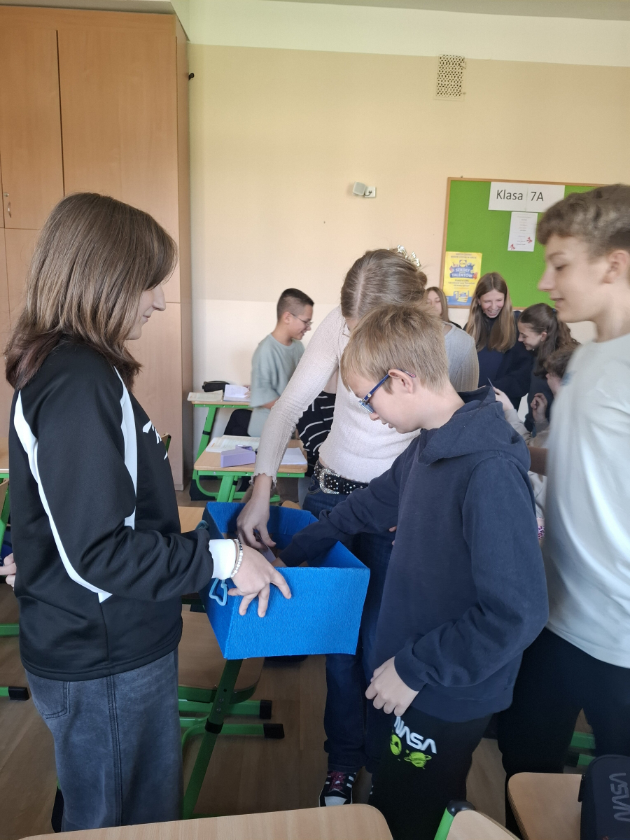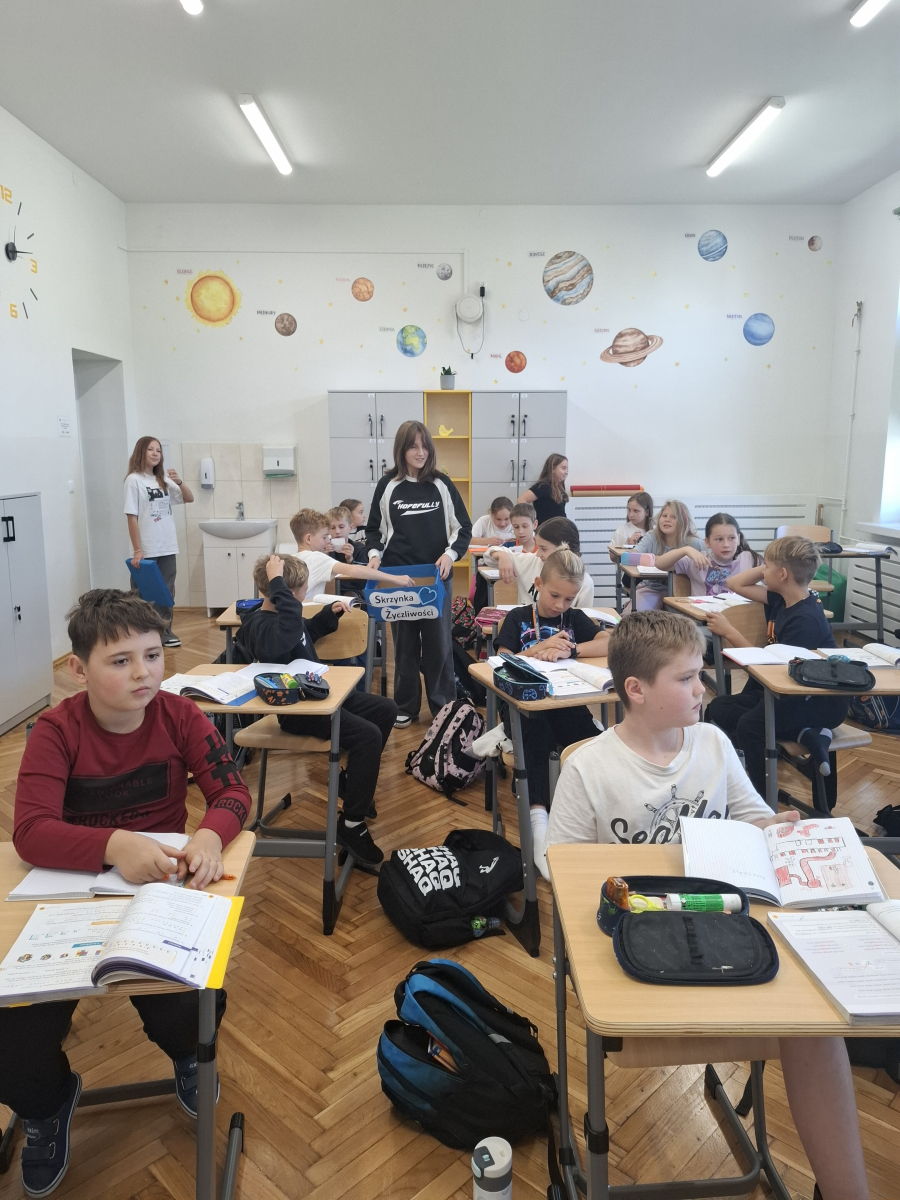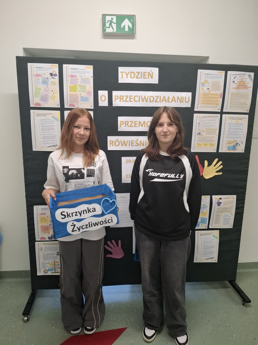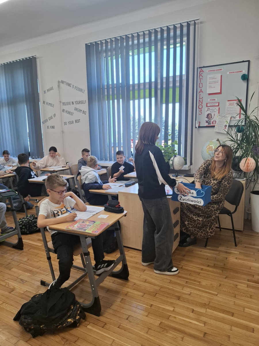 Klub Wolontariusza został wyznaczony do przeprowadzenia akcji pod hasłem „SKRZYNKA ŻYCZLIWOŚCI” w ramach cyklu działań organizowanych w naszej szkole w Tygodniu Przeciwdziałania Przemocy Rówieśniczej. Wolontariusze wraz z opiekunem przygotowali skrzynkę i małe karteczki dla każdego ucznia, nauczyciela i pracownika szkoły. Rano, 2 października społeczność szkolna miała za zadanie napisać lub narysować na karteczkach coś życzliwego i miłego. Treść wrzuconych do Skrzynki Życzliwości karteczek została następnie sprawdzona przez nauczycieli, a później każdy członek naszej społeczności szkolnej wylosowywał dla siebie karteczkę ze Skrzynki Życzliwości.