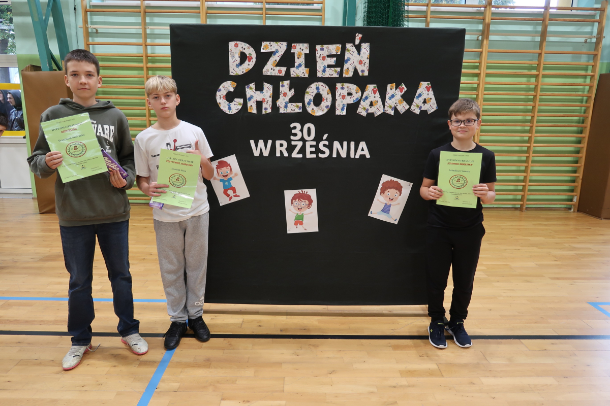 30 września w naszej szkole obchodziliśmy Dzień Chłopaka. Kilka dni wcześniej Samorząd Uczniowski wraz z opiekunami zorganizowali plebiscyt. Dziewczęta mogły oddawać głosy na chłopaków w czterech kategoriach. Wyniki zostały uroczyście ogłoszone, a zwycięzcom zostały wręczone nagrody i dyplomy. Wyniki plebiscytu: