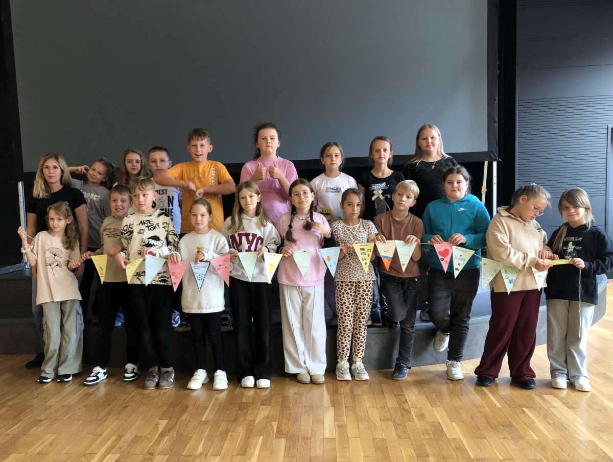 Po filmie uczniowie wzięli udział w warsztatach plastycznych, podczas których przygotowali proporczyki z własnym imieniem oraz rysunkiem przedstawiającym ich pasje i zainteresowania. Była to świetna okazja, by lepiej się poznać i podzielić swoimi talentami.