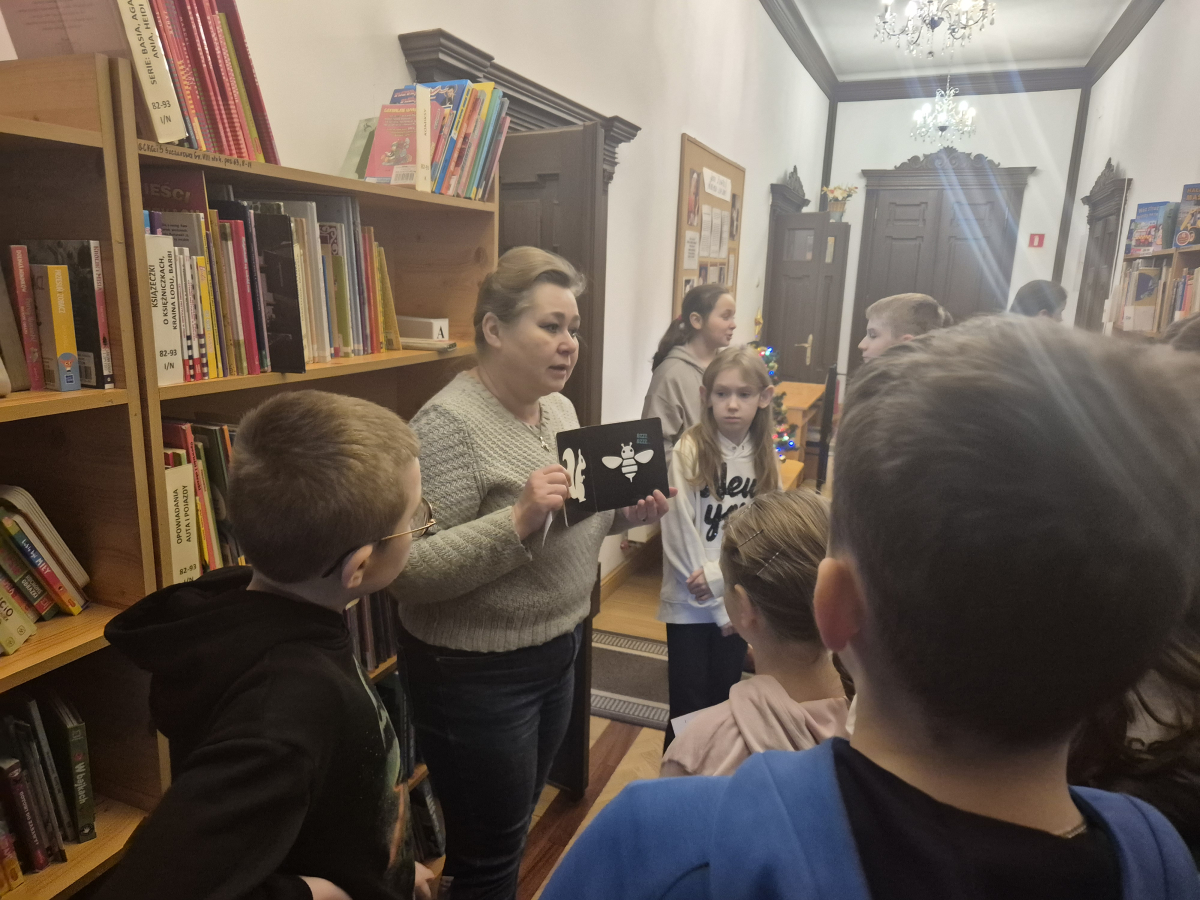 Dzieci wysłuchały ciekawych informacji na temat pracy w bibliotece, zasad wypożyczania książek oraz tego, jak należy o nie dbać. Nie zabrakło również opowieści o najchętniej czytanych lekturach, nowościach wydawniczych oraz ciekawostek związanych z działalnością biblioteki. Uczniowie z dużym zainteresowaniem słuchali przekazywanych informacji i chętnie zadawali pytania.