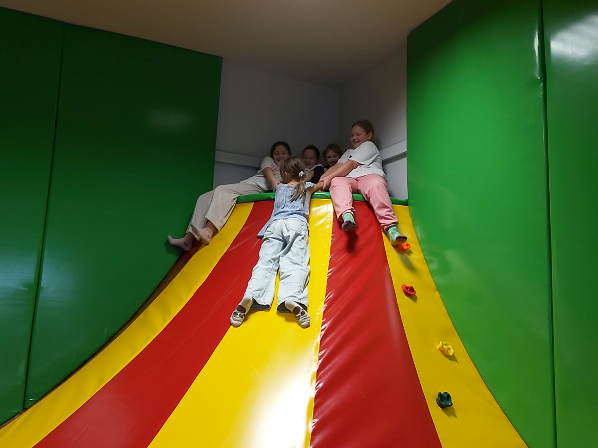 Po części edukacyjnej uczniowie wraz z opiekunami korzystali z atrakcji parku – bawili się na różnorodnych konstrukcjach, wspinali się na wulkan oraz skakali na trampolinach. Wspólna zabawa sprzyjała integracji i budowaniu pozytywnych relacji między dziećmi.