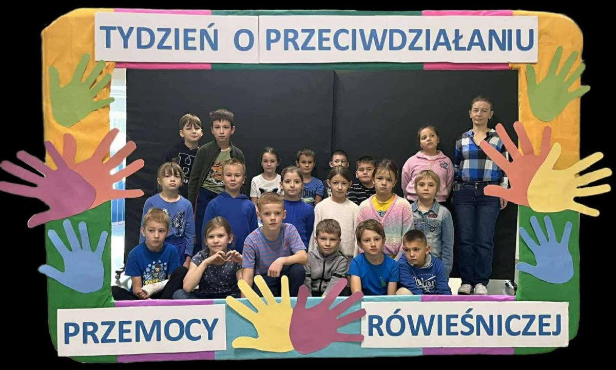 Podczas przerw i zajęć uczniowie robili sobie pamiątkowe zdjęcia w specjalnie przygotowanej „ramce”, symbolizującej wspólnotę i zaangażowanie w budowanie szkoły bez przemocy.