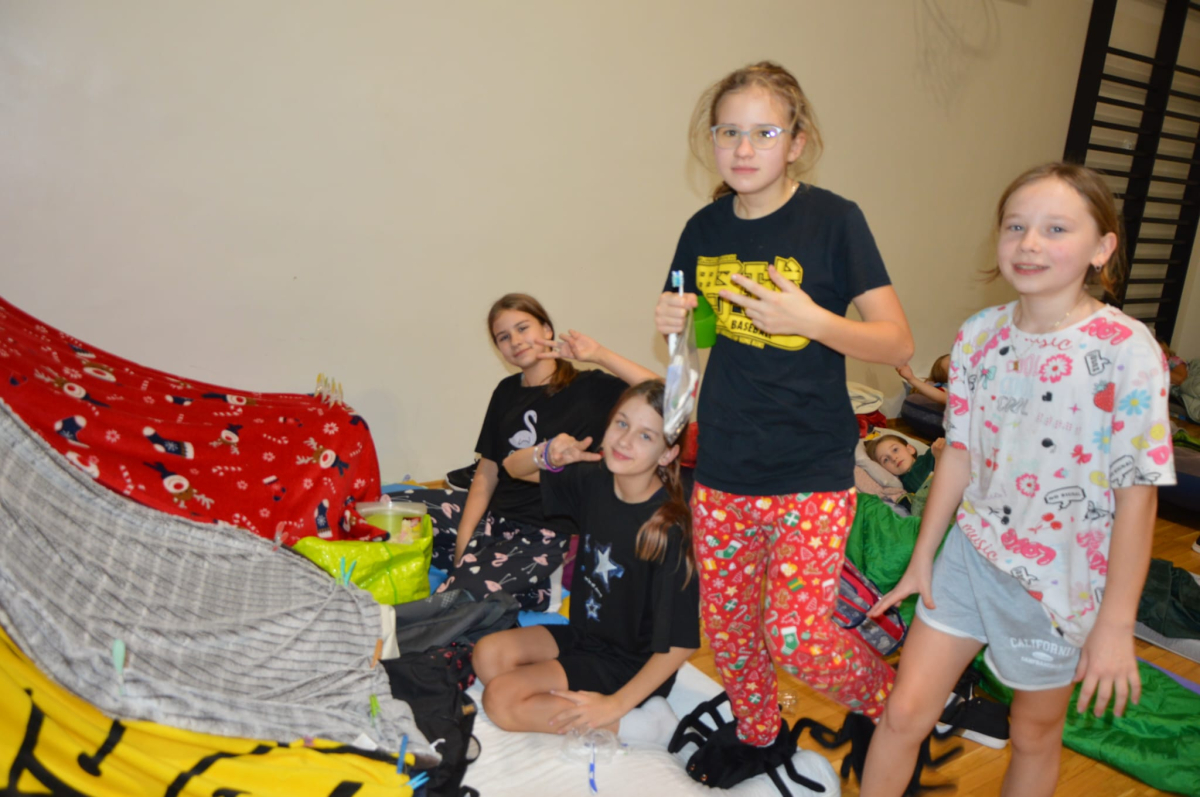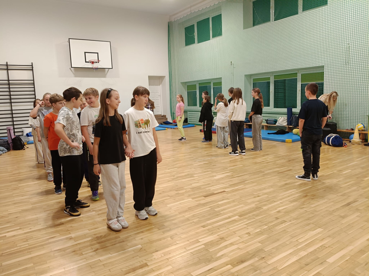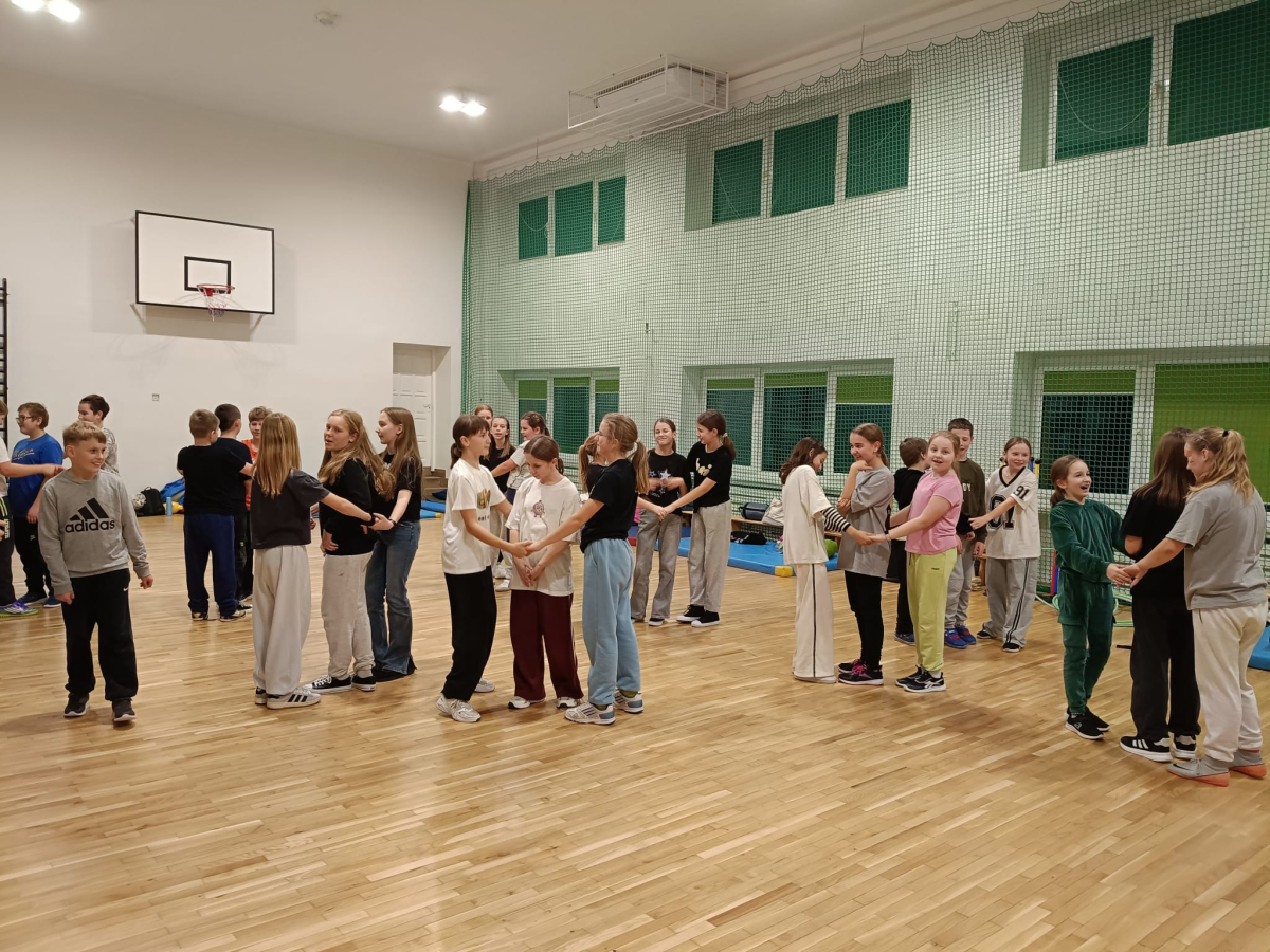 Uczniowie rozpoczęli wieczór od wspólnych gier i zabaw, które sprzyjały budowaniu relacji między klasami. Dużym zainteresowaniem cieszyły się rozgrywki sportowe, które przygotowała i przeprowadziła nauczycielka wychowania fizycznego – Katarzyna Biedrońska. Dzięki jej zaangażowaniu uczestnicy mogli aktywnie spędzić czas i wziąć udział w emocjonujących konkurencjach.