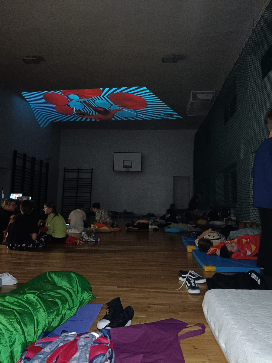 Nie zabrakło także tradycyjnych wróżb andrzejkowych, które wywołały wiele uśmiechu i ciekawości wśród uczniów. Jedną z najbardziej wyjątkowych atrakcji był seans filmowy z ekranem wyświetlanym na suficie, który nadał wydarzeniu niepowtarzalny klimat. W późniejszych godzinach odbyła się również zabawa taneczna, podczas której uczestnicy bawili się przy ulubionej muzyce.