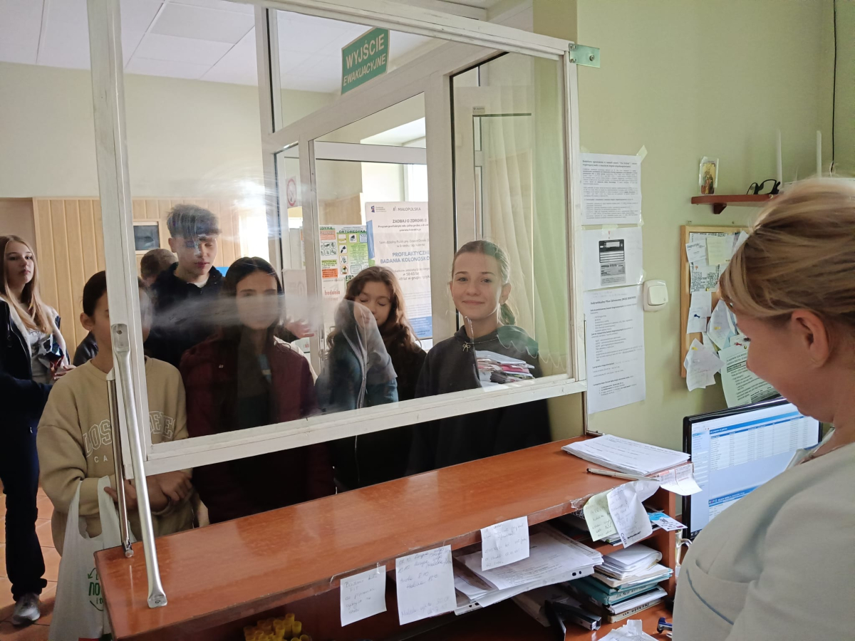 Podczas lekcji informatyki uczniowie wraz z nauczycielem odwiedzili różne miejsca pracy, aby przekonać się, w jaki sposób komputery są tam wykorzystywane.