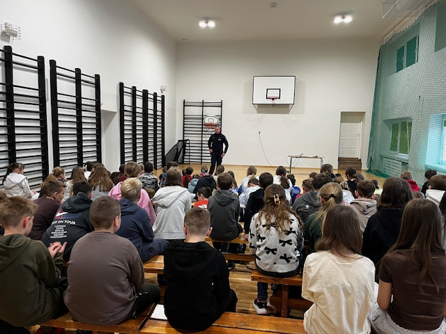 8 kwietnia w naszej szkole odbyło się spotkanie profilaktyczne z policjantem poświęcone tematyce cyberprzemocy i cyberbezpieczeństwa. Zajęcia zostały przeprowadzone w dwóch grupach wiekowych: dla uczniów klas 4–6 oraz 7–8.