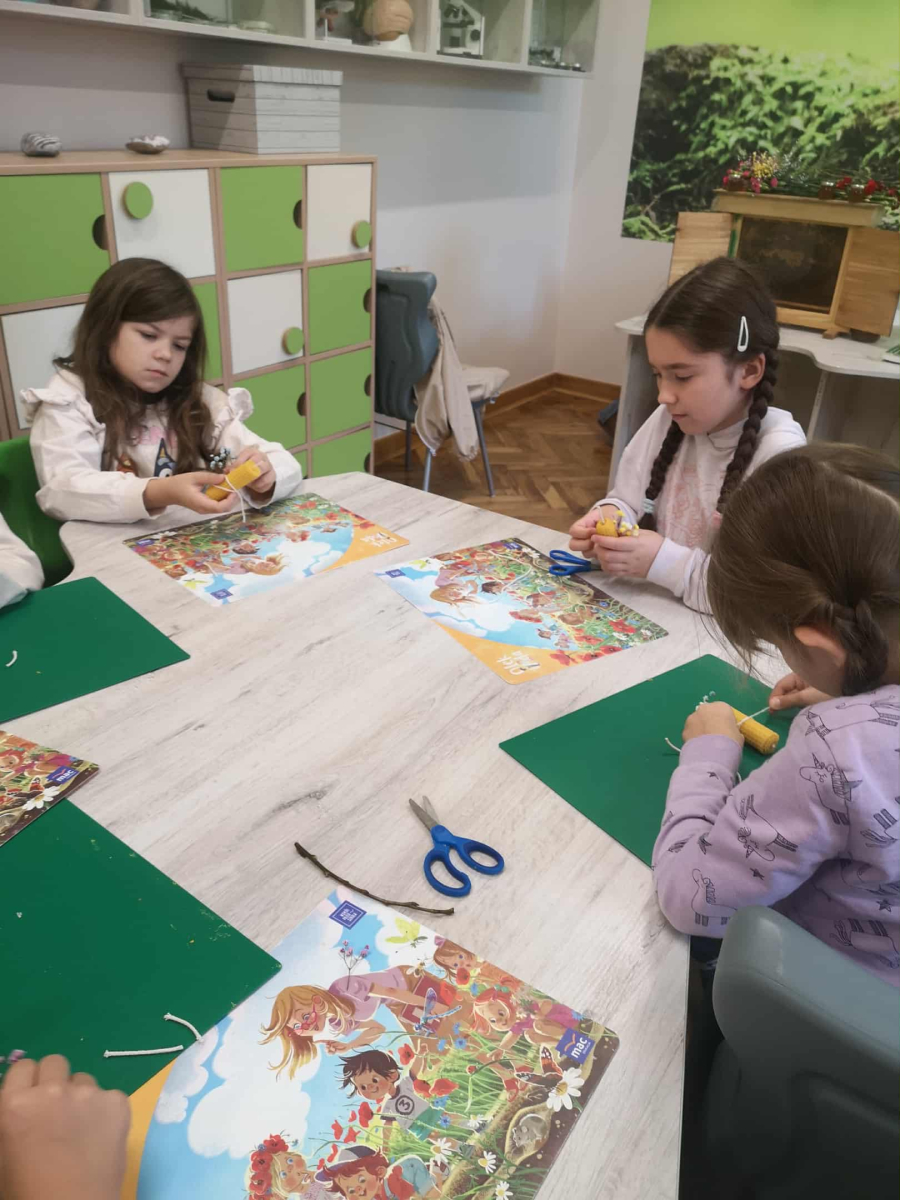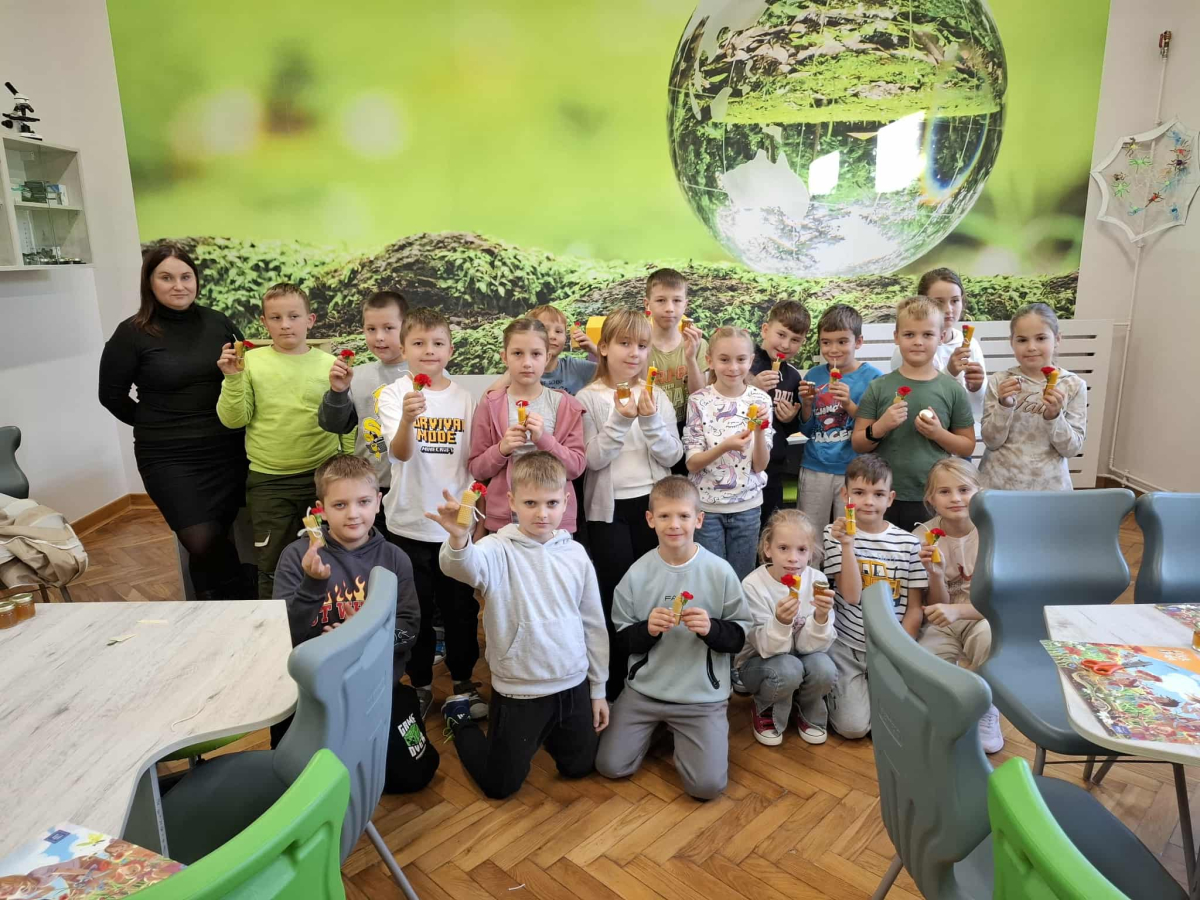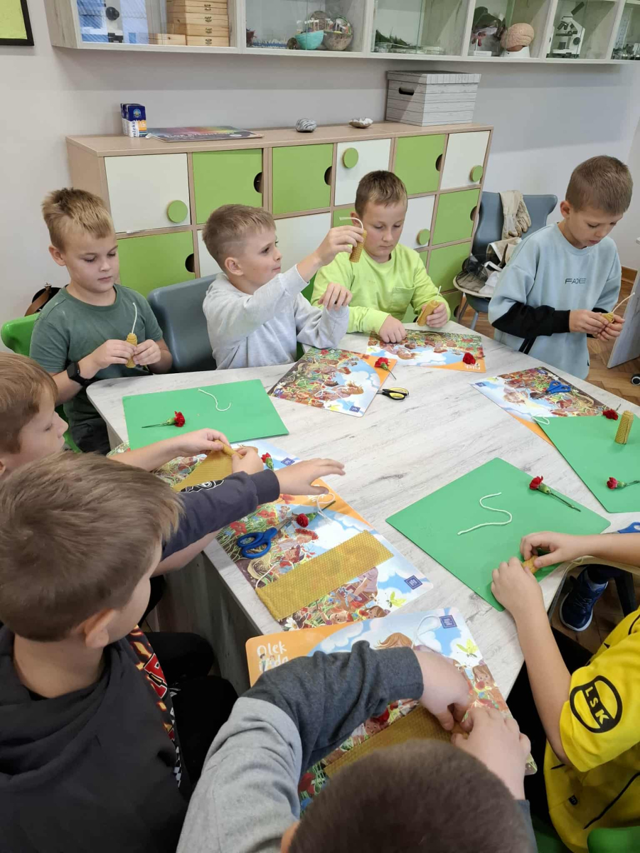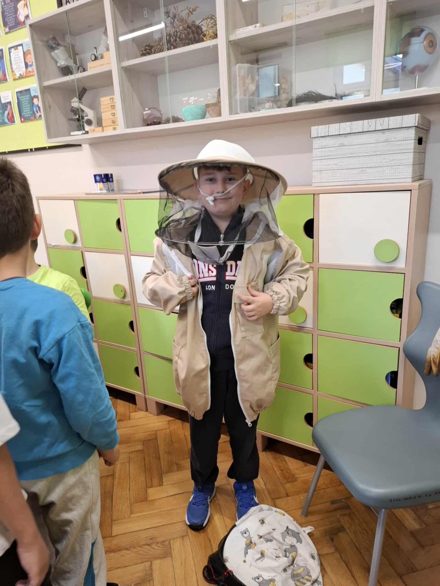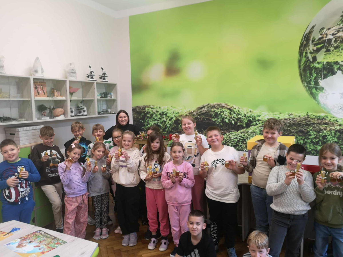 Dużą atrakcją było oglądanie i przymierzanie stroju pszczelarskiego oraz żywych pszczół. Uczniowie mogli również spróbować prawdziwego miodu prosto z pasieki. Na zakończenie spotkania każdy uczestnik wziął udział w warsztatach i wykonał własną świecę z wosku pszczelego.