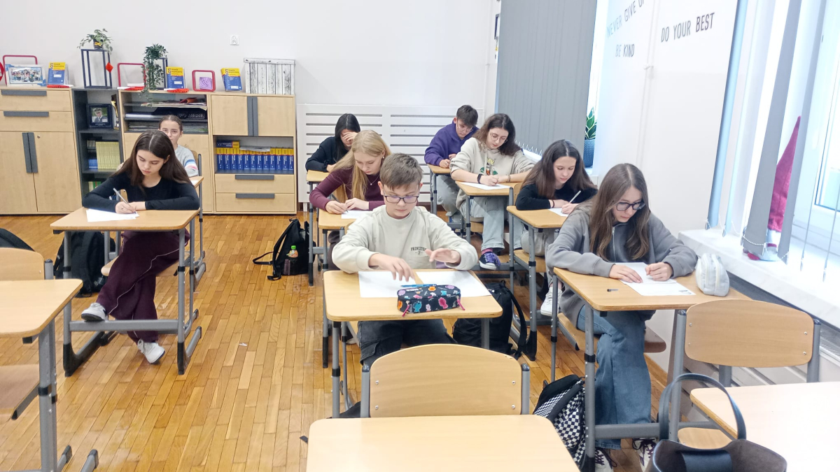 Tego samego dnia uczniowie klas 7–8 zmierzyli się z zadaniem napisania eseju w języku angielskim pt. „What would Adam Mickiewicz do if he lived now?”. Ich prace zachwycały pomysłowością i śmiałymi wizjami, ukazując, że postać Mickiewicza można interpretować na wiele sposobów – także w realiach współczesnego świata.