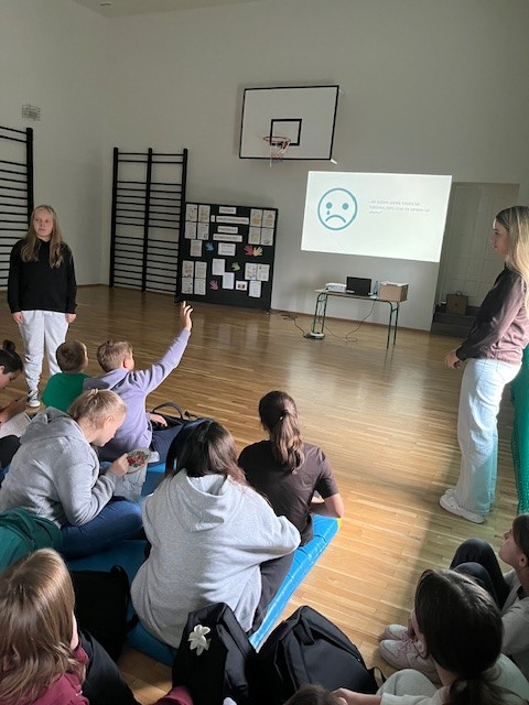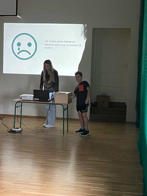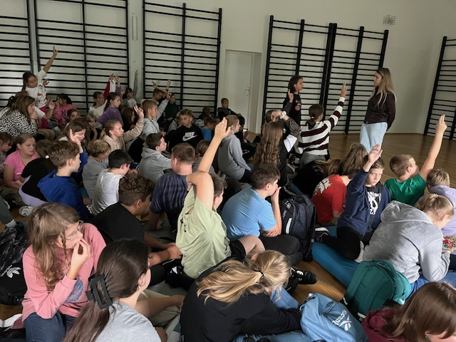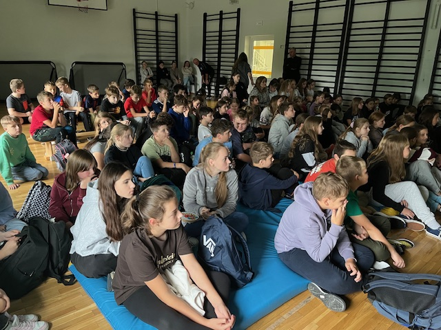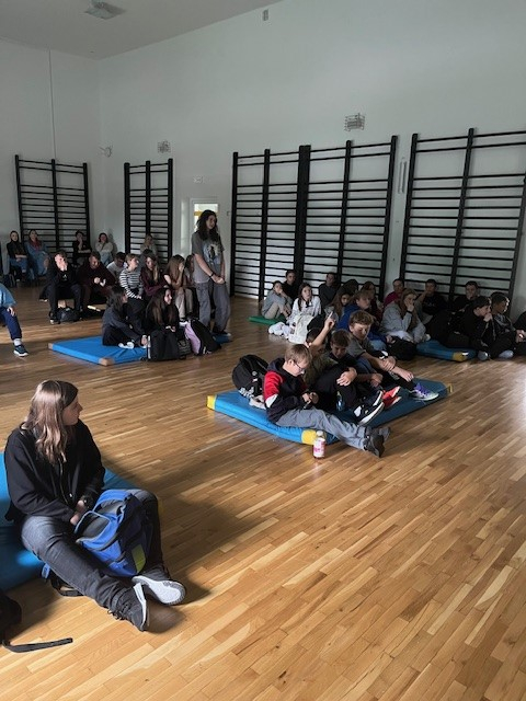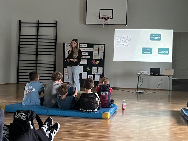 W ramach obchodów Tygodnia Przeciwdziałania Przemocy Rówieśniczej w środę odbyło się spotkanie warsztatowe z psychologiem, które zgromadziło uczniów klas IV–VI oraz VII–VIII. Zajęcia przeprowadzono w dwóch grupach na sali gimnastycznej.
