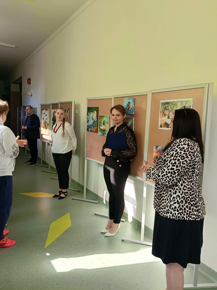 21 kwietnia 2026 roku w naszej szkole odbył się wernisaż wystawy pt. „Portrety zakorzenione” Roksany Romanowskiej, uczennicy klasy 6b.