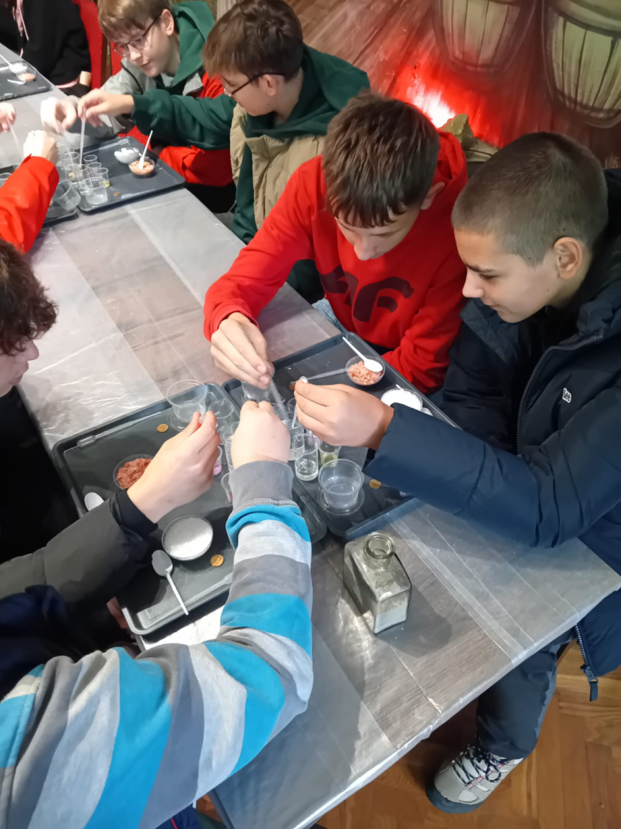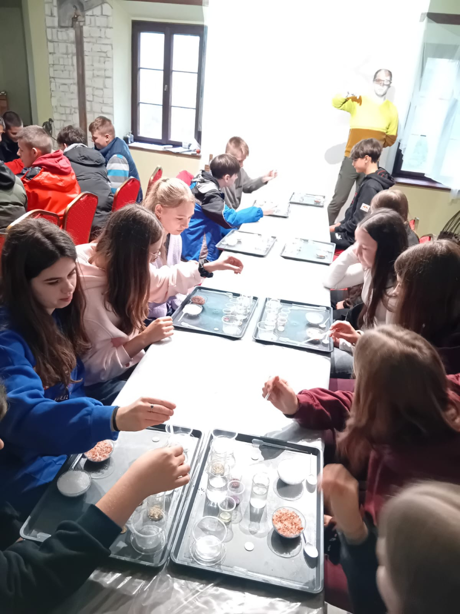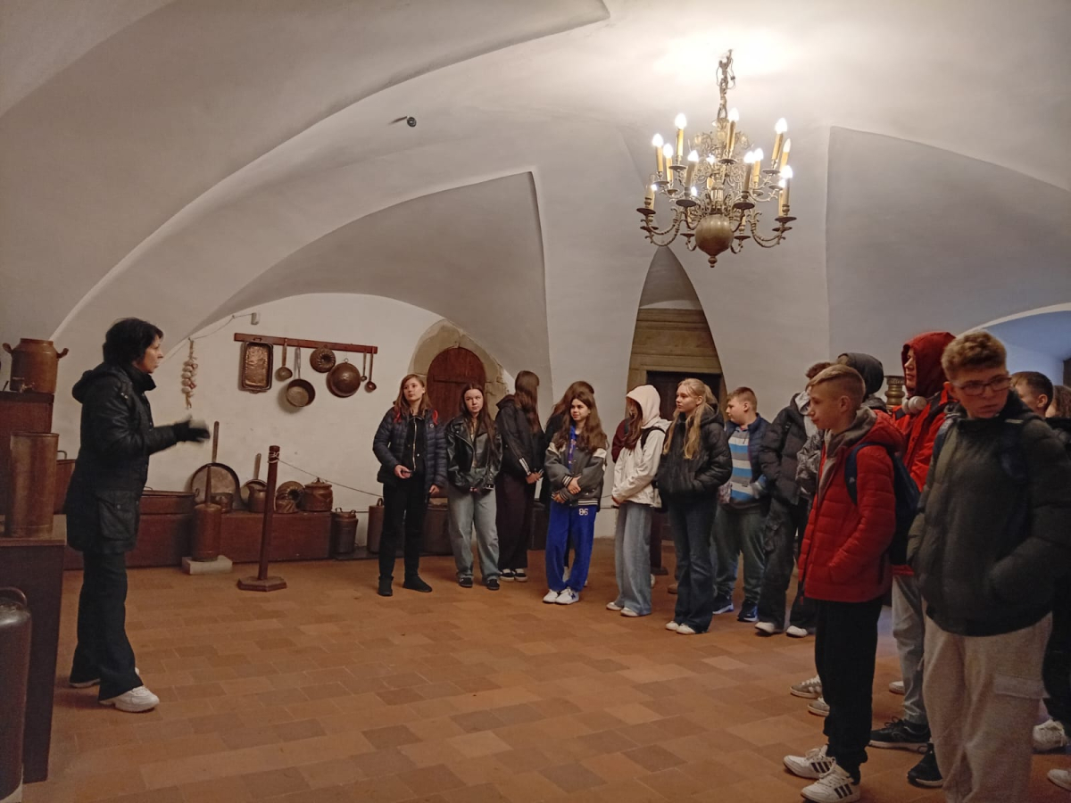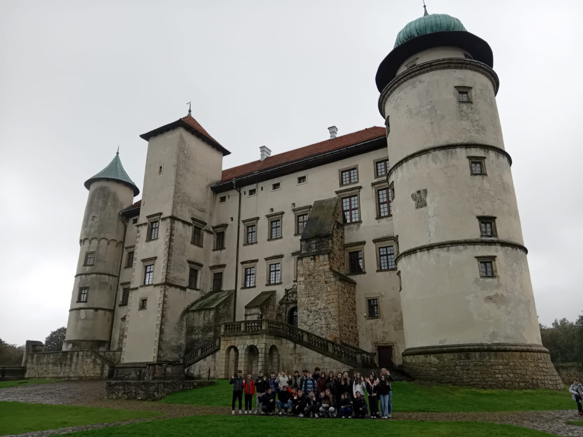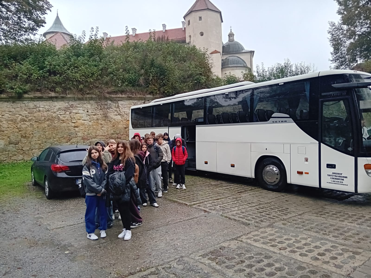 Ósmoklasiści uczestniczyli 7 października w wycieczce do Zamku w Nowym Wiśniczu. Celem wycieczki było zwiedzanie zamku połączone z warsztatami „Odczarować brud średniowiecza” oraz integracja młodzieży klas 8a i 8b. Udział w warsztatach poszerzył wiadomości uczniów z zakresu higieny czasów średniowiecza oraz z zakresu chemii, gdyż uczniowie sporządzali roztwory i mieszaniny, a do domów mieli możliwość zabrania samodzielnie przygotowanej soli do kąpieli. Przewodnicy zadbali o pogłębienie wiedzy uczniów z zakresu sytuacji politycznej i życia codziennego w średniowiecznej Polsce i Europie oraz historii Zamku w Nowym Wiśniczu. Zajęcia BASTION VR pozwoliły na koniec zobaczyć codzienne życie w zamku, okolicę zamku i byłego klasztoru oraz wcześniej zwiedzane pomieszczenia takimi, jakimi były w wieku XVII.