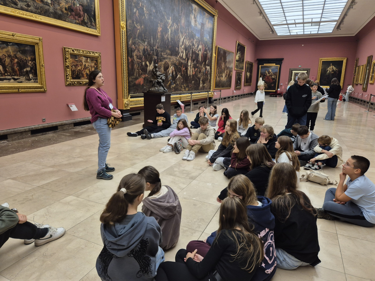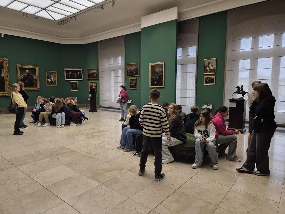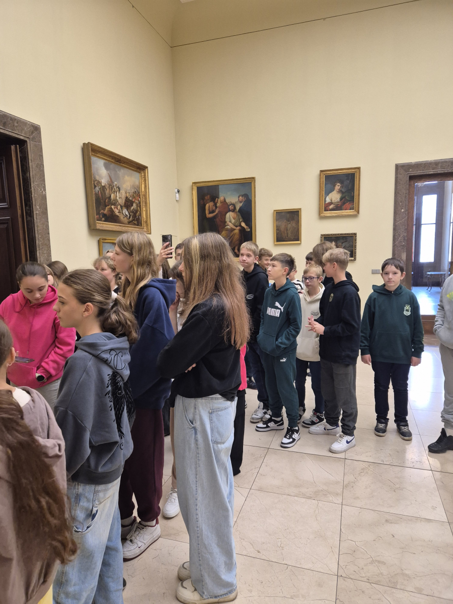 Już od rana dopisywały wszystkim świetne humory. Po przyjeździe do Krakowa siódmoklasiści udali się do Galerii Sztuki, gdzie mieli okazję podziwiać różnorodne dzieła i dowiedzieć się więcej o pracy artystów. Prowadzący zajęcia w ciekawy sposób opowiadali o technikach malarskich, symbolice obrazów i sposobach interpretacji sztuki współczesnej.
