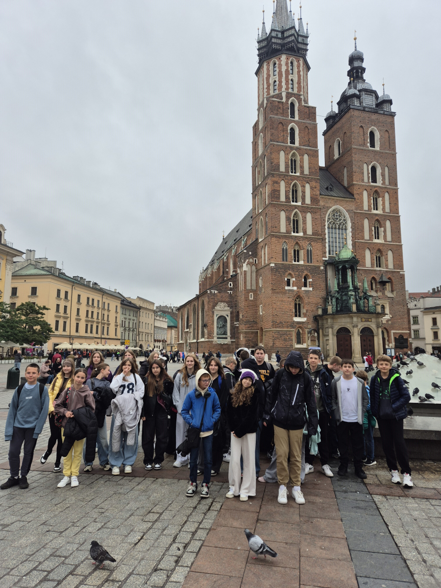 Podczas wycieczki uczniowie znaleźli czas na spacer po Krakowie i odwiedzili najpiękniejsze zakątki miasta – Rynek Główny i Sukiennice. Nie zabrakło też chwili na pamiątkowe zdjęcia.