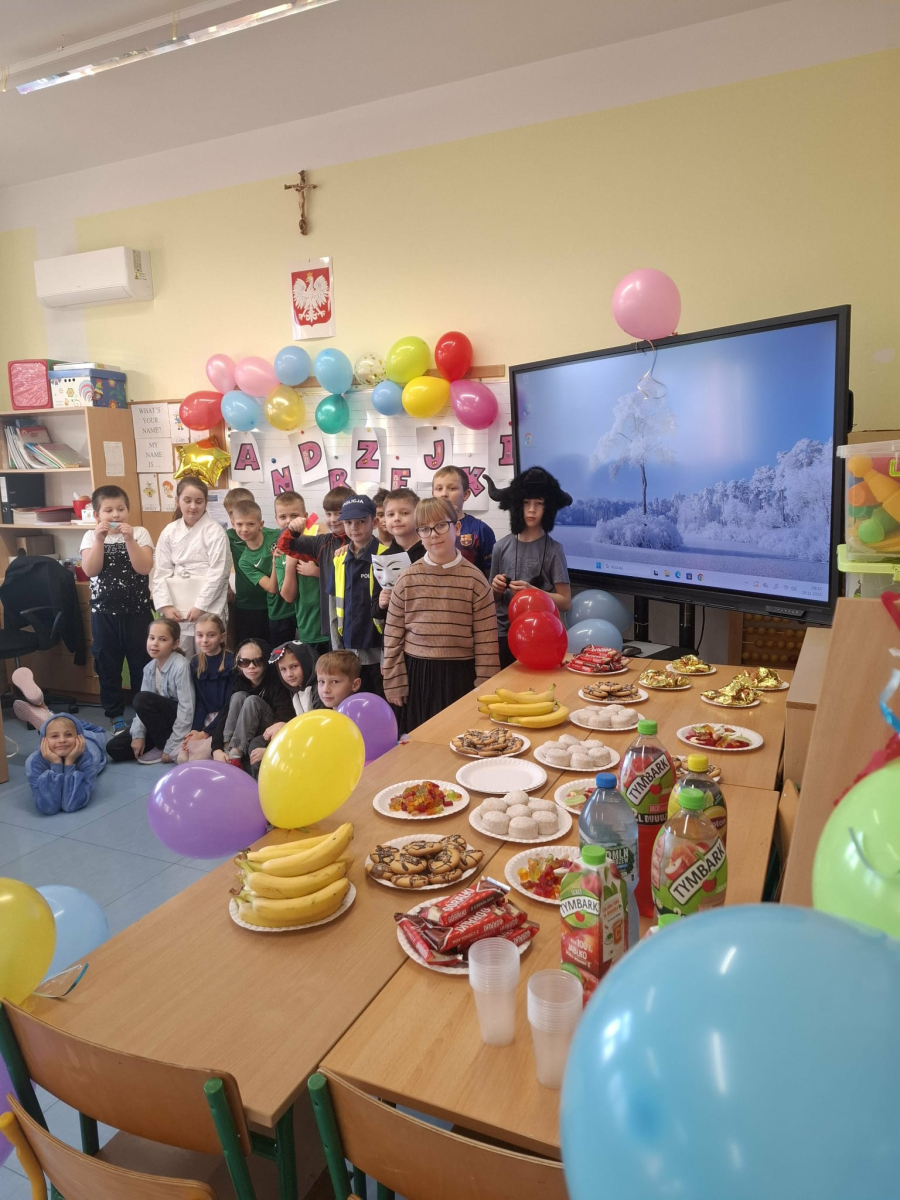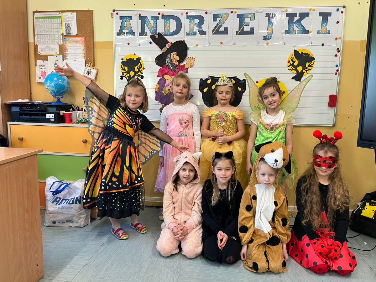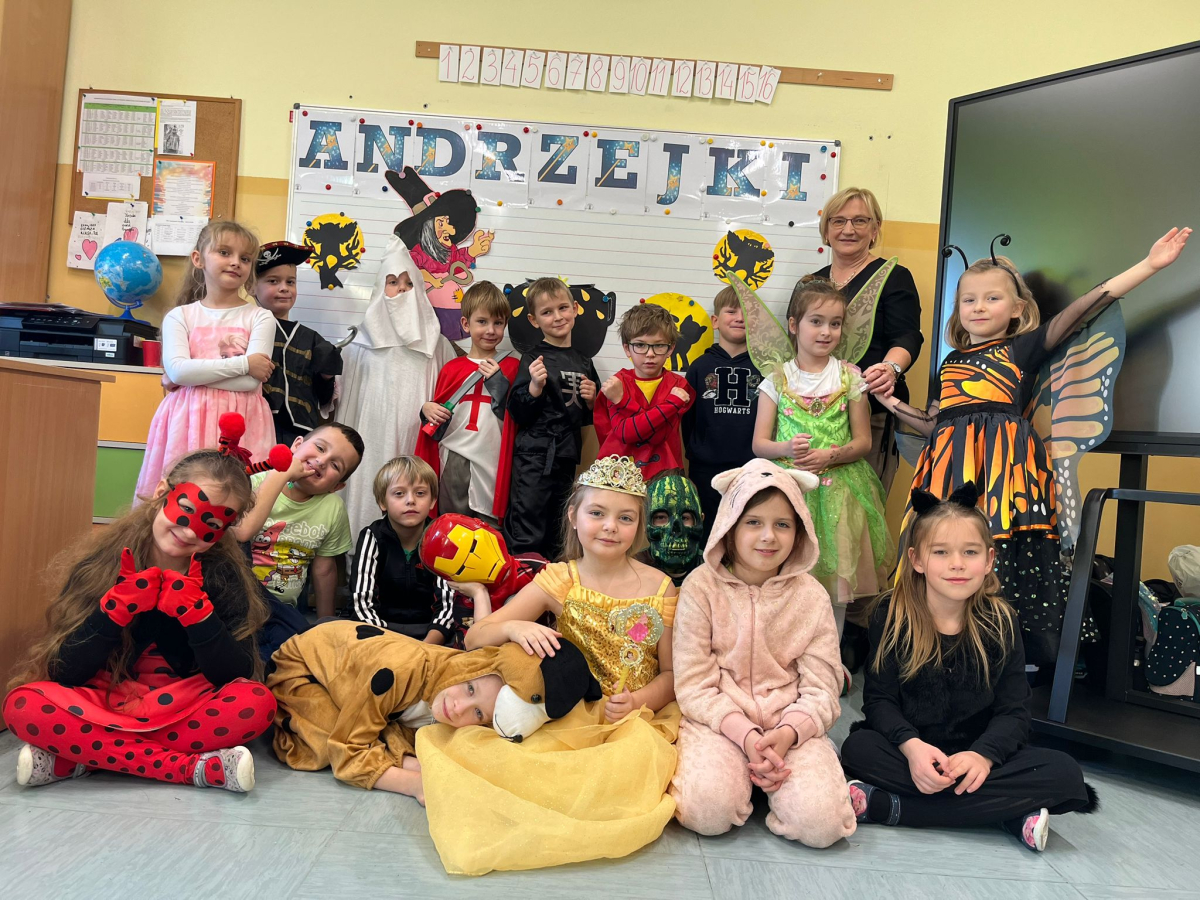 28 listopada 2025 roku w naszej szkole odbyły się klasowe zabawy andrzejkowe dla uczniów klas 1-3 i dzieci z oddziału przedszkolnego. Dzieci, kultywując tradycje związane z wigilią św. Andrzeja losowały wróżby przepowiadające przyszłość. Emocji nie brakowało także podczas zgadywania zagadek i zdobywania nagród. Wszyscy uczestnicy przebrani w ciekawe i tajemnicze stroje wspaniale bawili się w rytm muzyki, którą zapewniły wychowawczynie w danej klasie. Panie poprowadziły uczniów w świat radosnej atmosfery. W rytmie dyskotekowej muzyki odbywały się różnorodne zabawy taneczne, konkursy, które przysporzyły tancerzom wiele radości. Każdy mógł zaprezentować swój wymarzony strój. Po wyczerpujących wróżbach i tańcach uczestnicy mogli zregenerować swoje siły, kosztując przygotowane przez rodziców rarytasy: ciasta, babeczki, owoce i zdrowe napoje.