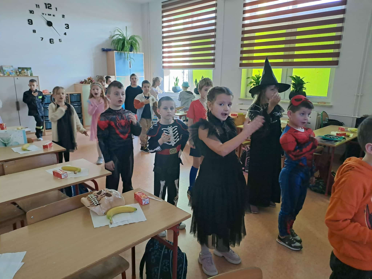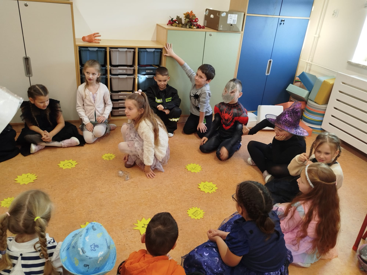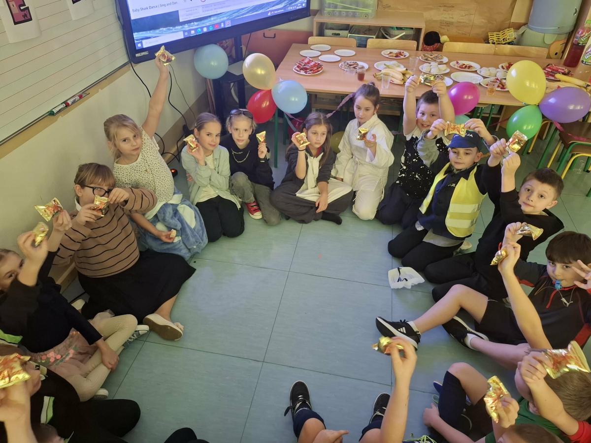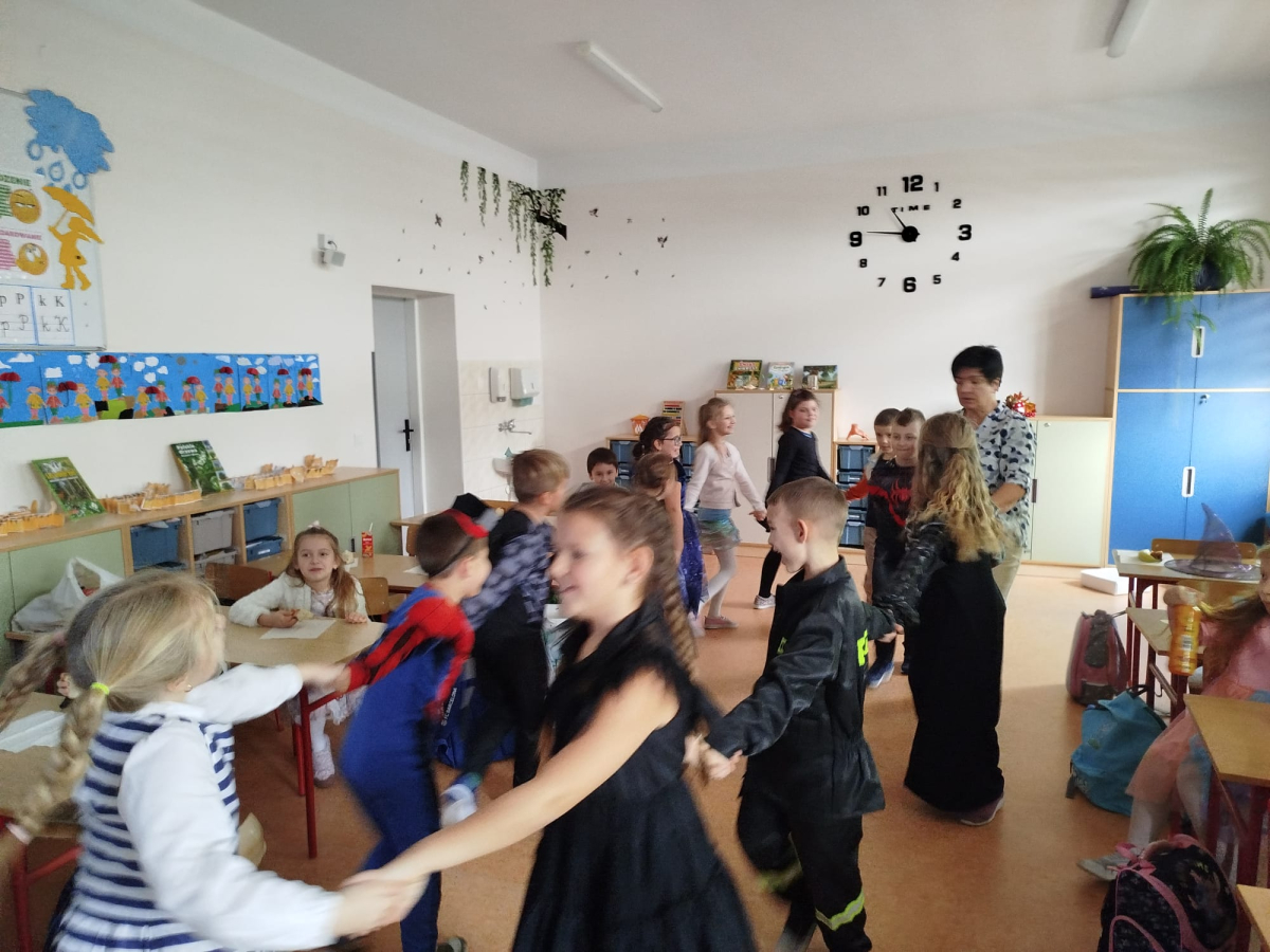 28 listopada 2025 roku w naszej szkole odbyły się klasowe zabawy andrzejkowe dla uczniów klas 1-3 i dzieci z oddziału przedszkolnego. Dzieci, kultywując tradycje związane z wigilią św. Andrzeja losowały wróżby przepowiadające przyszłość. Emocji nie brakowało także podczas zgadywania zagadek i zdobywania nagród. Wszyscy uczestnicy przebrani w ciekawe i tajemnicze stroje wspaniale bawili się w rytm muzyki, którą zapewniły wychowawczynie w danej klasie. Panie poprowadziły uczniów w świat radosnej atmosfery. W rytmie dyskotekowej muzyki odbywały się różnorodne zabawy taneczne, konkursy, które przysporzyły tancerzom wiele radości. Każdy mógł zaprezentować swój wymarzony strój. Po wyczerpujących wróżbach i tańcach uczestnicy mogli zregenerować swoje siły, kosztując przygotowane przez rodziców rarytasy: ciasta, babeczki, owoce i zdrowe napoje.