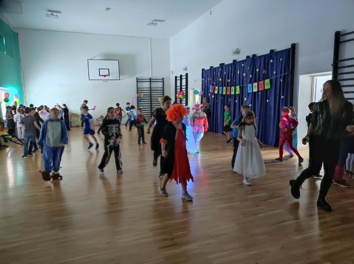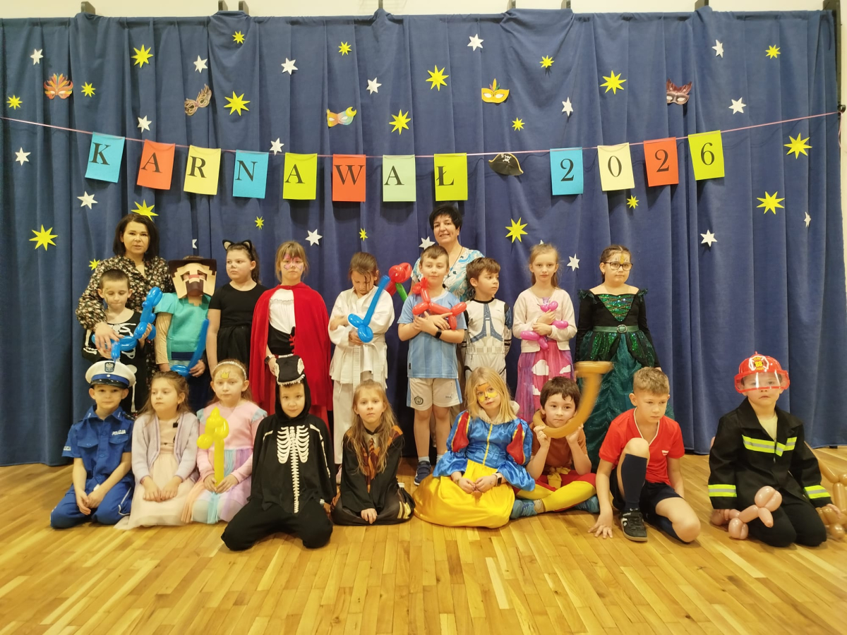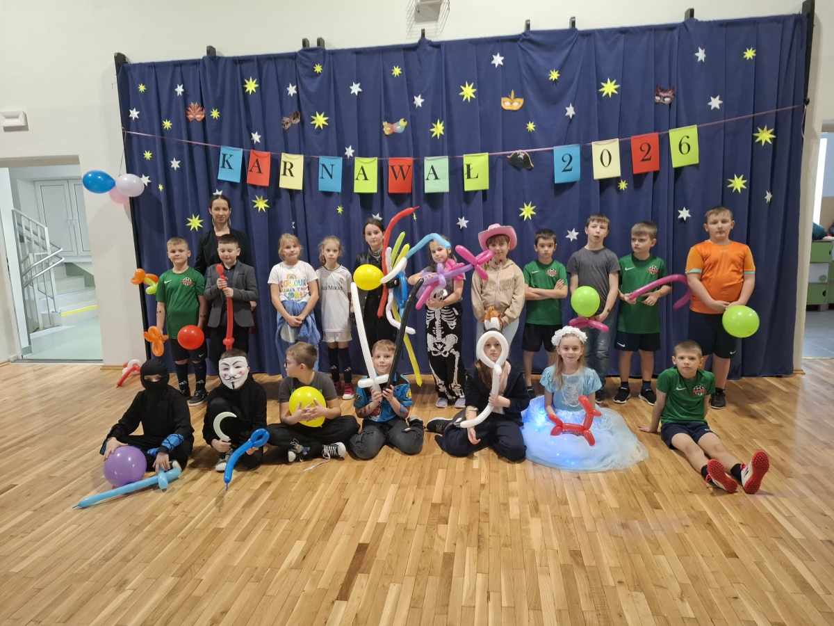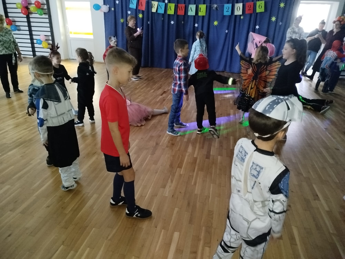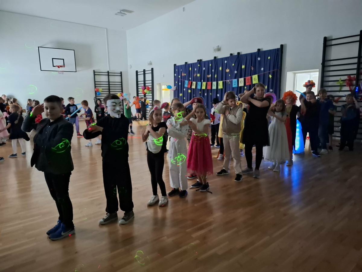 W czwartek, 8 stycznia odbył się w naszej szkole długo oczekiwany przez przedszkolaków i uczniów klas I - III bal karnawałowy. Tego dnia sala gimnastyczna zamieniła się w barwną krainę pełną wróżek, księżniczek, czarownic, superbohaterów, kowbojów, piratów, policjantów oraz innych postaci z kreskówek i bajek. Rozrywkę uczestnikom balu zapewniły mamy-animatorki, które malowały dzieciom twarze a z kolorowych balonów wyczarowywały fantastyczne kształty. Na naszym balu nikt nie mógł się nudzić. Dzieci świetnie się bawiły, chętnie tańczyły i uczestniczyły w różnorodnych zabawach. Nie zabrakło wesołych pociągów, tańca kaczuszek, wymyślania rozmaitych figur tanecznych oraz zabawy z chusteczkami. Po zakończonych tańcach na uczestników zabawy, w każdej klasie czekał poczęstunek przygotowany przez nasze mamy.