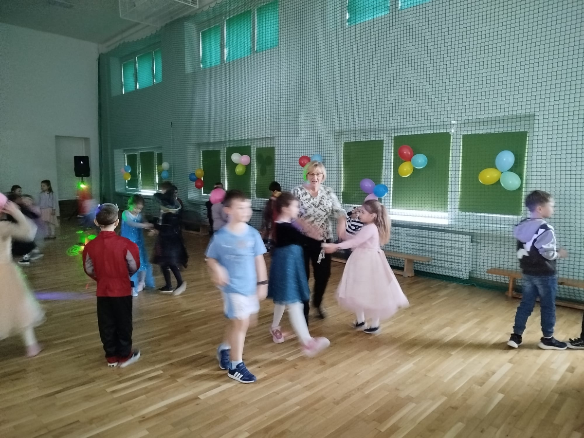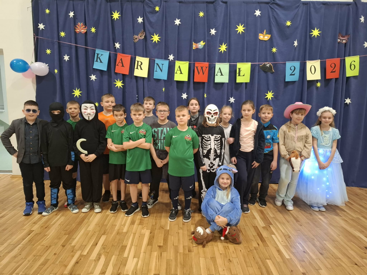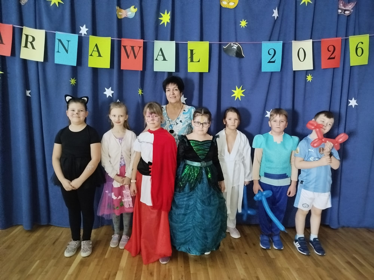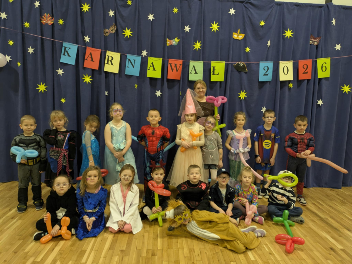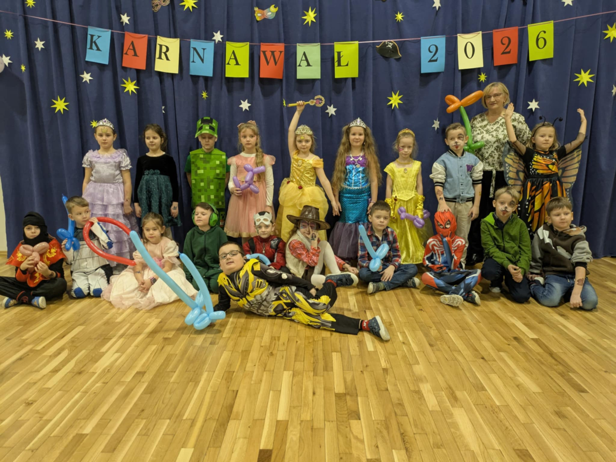 W czwartek, 8 stycznia odbył się w naszej szkole długo oczekiwany przez przedszkolaków i uczniów klas I - III bal karnawałowy. Tego dnia sala gimnastyczna zamieniła się w barwną krainę pełną wróżek, księżniczek, czarownic, superbohaterów, kowbojów, piratów, policjantów oraz innych postaci z kreskówek i bajek. Rozrywkę uczestnikom balu zapewniły mamy-animatorki, które malowały dzieciom twarze a z kolorowych balonów wyczarowywały fantastyczne kształty. Na naszym balu nikt nie mógł się nudzić. Dzieci świetnie się bawiły, chętnie tańczyły i uczestniczyły w różnorodnych zabawach. Nie zabrakło wesołych pociągów, tańca kaczuszek, wymyślania rozmaitych figur tanecznych oraz zabawy z chusteczkami. Po zakończonych tańcach na uczestników zabawy, w każdej klasie czekał poczęstunek przygotowany przez nasze mamy.