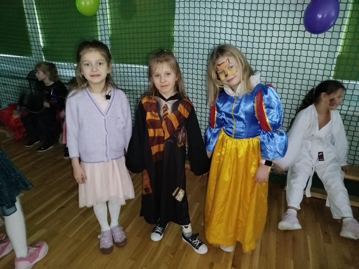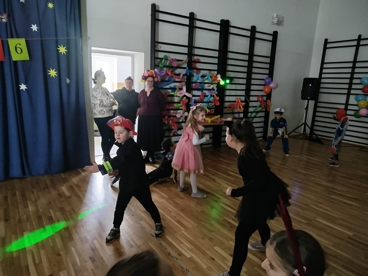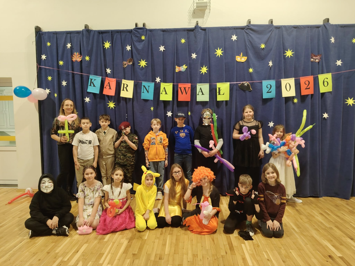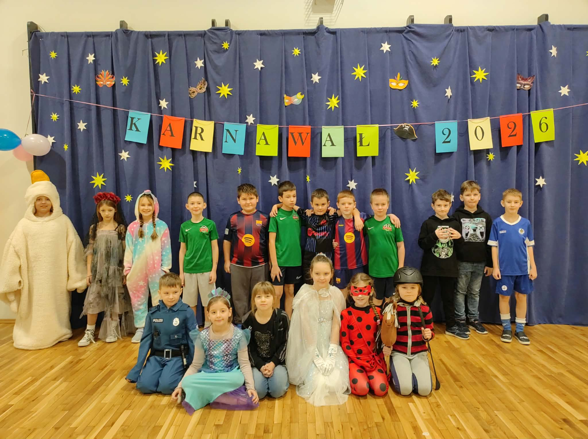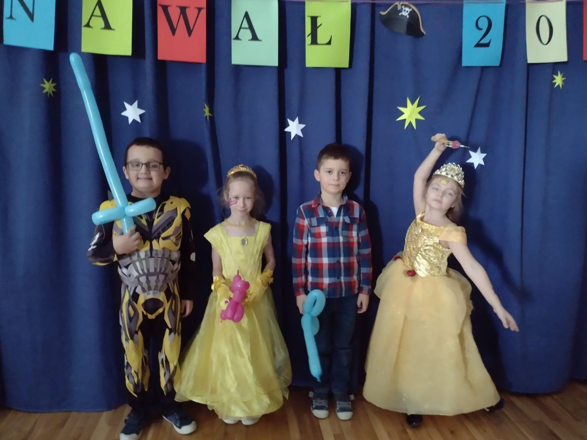 W czwartek, 8 stycznia odbył się w naszej szkole długo oczekiwany przez przedszkolaków i uczniów klas I - III bal karnawałowy. Tego dnia sala gimnastyczna zamieniła się w barwną krainę pełną wróżek, księżniczek, czarownic, superbohaterów, kowbojów, piratów, policjantów oraz innych postaci z kreskówek i bajek. Rozrywkę uczestnikom balu zapewniły mamy-animatorki, które malowały dzieciom twarze a z kolorowych balonów wyczarowywały fantastyczne kształty. Na naszym balu nikt nie mógł się nudzić. Dzieci świetnie się bawiły, chętnie tańczyły i uczestniczyły w różnorodnych zabawach. Nie zabrakło wesołych pociągów, tańca kaczuszek, wymyślania rozmaitych figur tanecznych oraz zabawy z chusteczkami. Po zakończonych tańcach na uczestników zabawy, w każdej klasie czekał poczęstunek przygotowany przez nasze mamy.